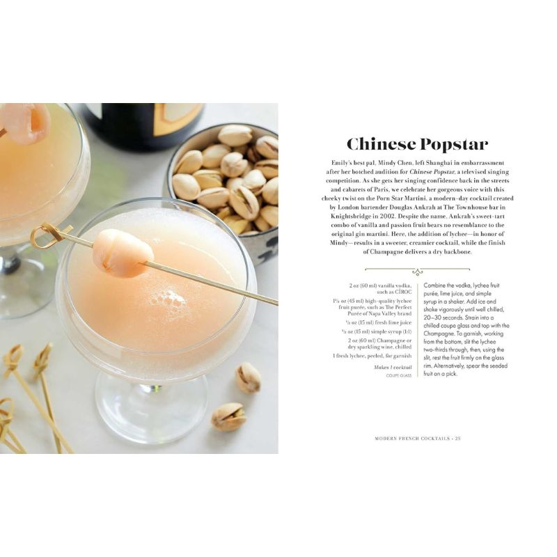 Ανακαλύψτε λαχταριστές συνταγές όπως το Sancerre Breakfast Wine Cocktail και το Champagne Spray, απολαύστε γαλλικές κλασικές δημιουργίες όπως το French 75 και το Boulevardier, αλλά και νέες μη αλκοολούχες παραλλαγές που φέρνουν φρεσκάδα σε κάθε περίσταση. Με εντυπωσιακές φωτογραφίες από τη σειρά, αποσπάσματα με ατάκες που αγαπήθηκαν από τους φαν και πρακτικές συμβουλές για cocktail soirées, viewing parties και drinking games, το βιβλίο αυτό αποτελεί ιδανικό δώρο για τους λάτρεις της Emily in Paris αλλά και για κάθε λάτρη της γαλλικής κουλτούρας και της mixology.