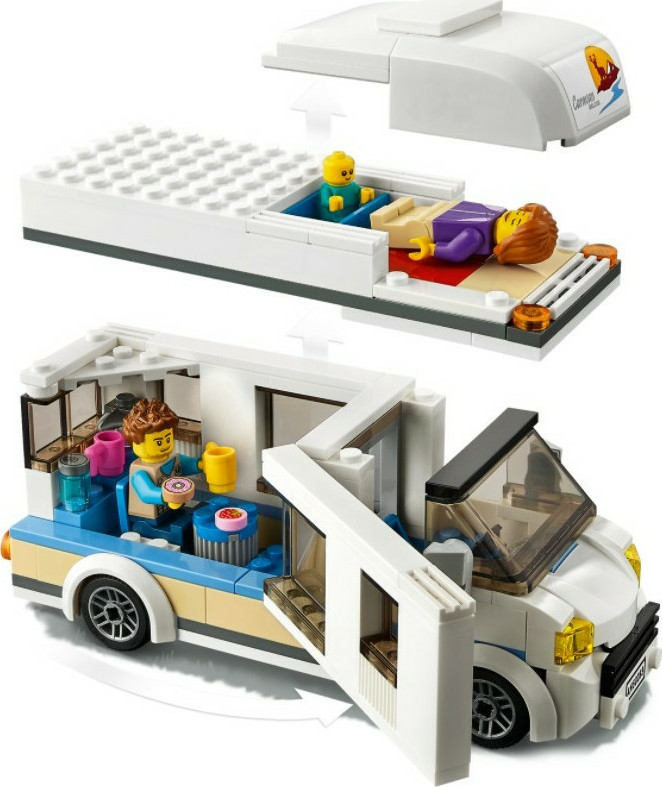 Πήγαινε για διακοπές γεμάτες διασκέδαση με το εμβληματικό LEGO® City Τροχόσπιτο για Διακοπές. Οδήγησε μέχρι το αγαπημένο σου μέρος, βρες ένα καλό σημείο για να κατασκηνώσεις και ξεπακετάρισε τα έπιπλα εξωτερικού χώρου. Τάισε το μωρό με το μπιμπερό και χρησιμοποίησε τον μάρσιπο ενώ ετοιμάζεις το φαγητό στη μικρή κουζίνα. Απόλαυσε ένα υπέροχο πικνίκ στην ύπαιθρο, βάλε το μωρό για ύπνο και προγραμμάτισε την επόμενη διαδρομή σου. Αύριο σε περιμένει ακόμα μία συναρπαστική μέρα!