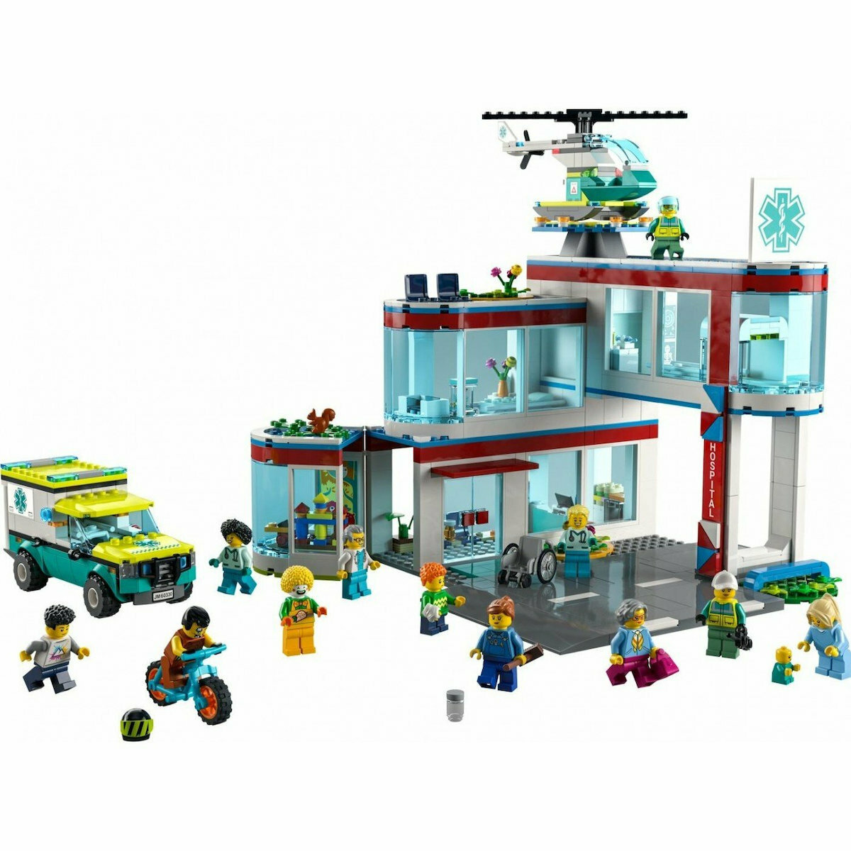 Πολλή δουλειά σήμερα στο νοσοκομείο. Η Δρ. Φλίμπερ φροντίζει μια μαμά με το νεογέννητο μωρό της, ενώ ο Δρ. Σπέτζελ εκτελεί μια αξονική τομογραφία και ο κλόουν Σίτρους ο Κλόουν διασκεδάζει τα παιδιά. Στο εξωτερικό, ο Γουάλοπ μεταφέρεται με φορείο στο ασθενοφόρο ενώ ο πιλότος απογειώνεται από την οροφή με το ελικόπτερο διάσωσης. Έλα μαζί με πολλούς διασκεδαστικούς χαρακτήρες για συναρπαστικές περιπέτειες στο Νοσοκομείο της LEGO® City!