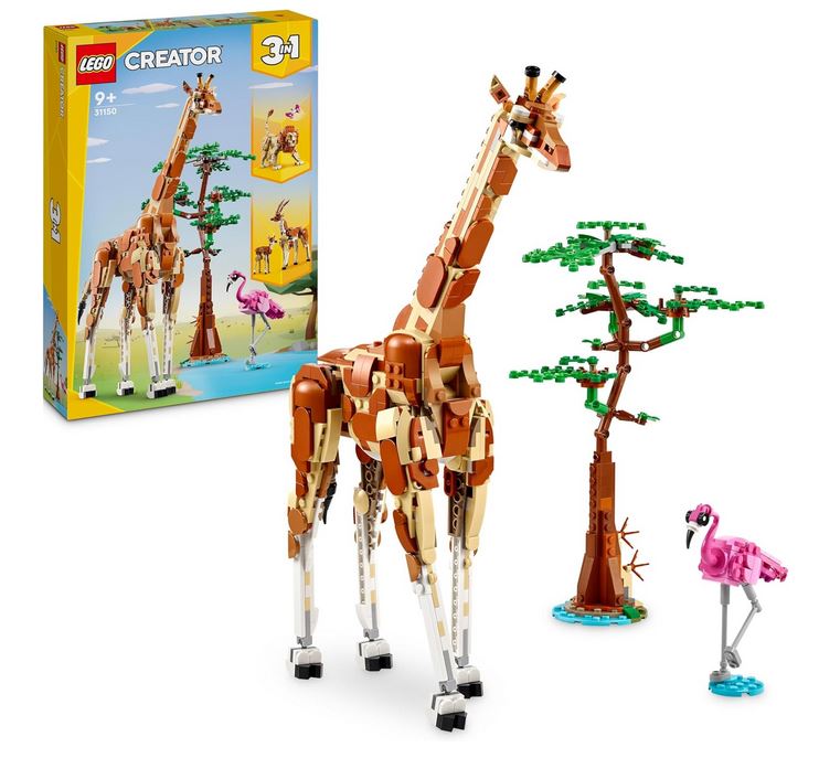 Με αυτό το σετ μπορείς να κάνεις ότι πηγαίνεις σε σαφάρι για να δεις μεγαλοπρεπή άγρια ζώα στο φυσικό τους περιβάλλον. Δες την κομψή καμηλοπάρδαλη που χαμηλώνει τον μακρύ της λαιμό για να χαιρετίσει ένα φλαμίνγκο. Για ακόμα περισσότερες περιπέτειες, ανακατασκεύασέ την σε μια γαζέλα που μαθαίνει στο μικρό της να περπατά, ή σε ένα φιλικό λιοντάρι που ξεκουράζεται στη σκιά ενός δέντρου με μια πεταλούδα. Τι θα κατασκευάσεις; Με αυτό το φανταστικό 3σε1 σετ, η επιλογή είναι δική σου.