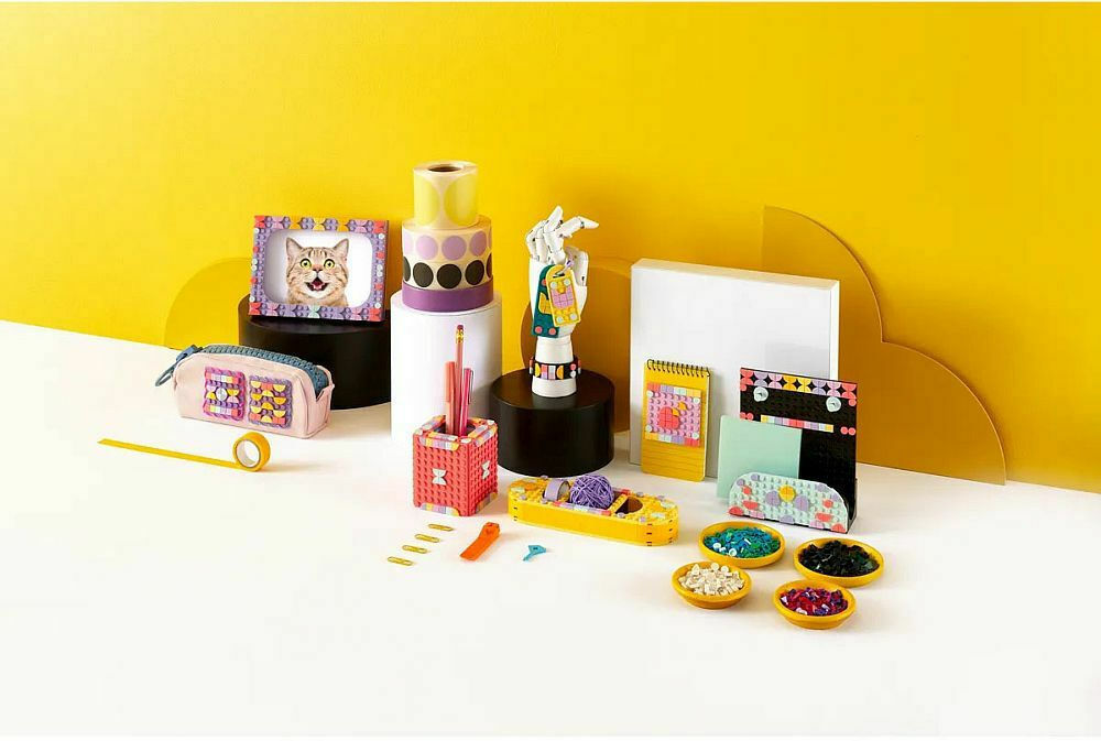 Άνοιξε τα φτερά της δημιουργικότητάς σου με το σετ Εργαλειοθήκη Σχεδιαστή – Μοτίβα! Άνοιξε το σετ LEGO® DOTS και ανακάλυψε όλα τα πολύχρωμα πλακάκια καθώς εξερευνάς τους καμβάδες, που περιλαμβάνουν βραχιόλι διπλής σειράς, ραφτά και αυτοκόλλητα μοτίφ, ετικέτες μηνυμάτων, μολυβοθήκη, δίσκο γραφείου, δίσκο σημειώσεων με κρεμάστρες και μεγάλη κορνίζα φωτογραφιών. Χρησιμοποίησε την περιλαμβανόμενη έμπνευση ή άσε την επινοητικότητά σου ελεύθερη! Θέλεις νέα εμφάνιση; #youDOTyou!