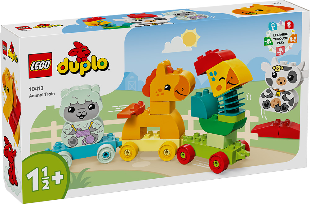 Επιβιβαστείτε για πολλές ώρες δημιουργικής αντιστοίχισης χρωμάτων με το διασκεδαστικό LEGO® DUPLO® My First Τρένο με Ζώα. Τα νήπια αποφασίζουν ποιο ζώο θα καθίσει σε ποιο βαγόνι, ανάλογα με το χρώμα του, και κατασκευάζουν και ανακατασκευάζουν τα χαριτωμένα ζωάκια της φάρμας με όποιον τρόπο θέλουν. Θα αναπτύξουν σημαντικές κινητικές δεξιότητες καθώς συνδέουν τα βαγόνια και μετακινούν τον εύκαμπτο λαιμό του κόκορα.