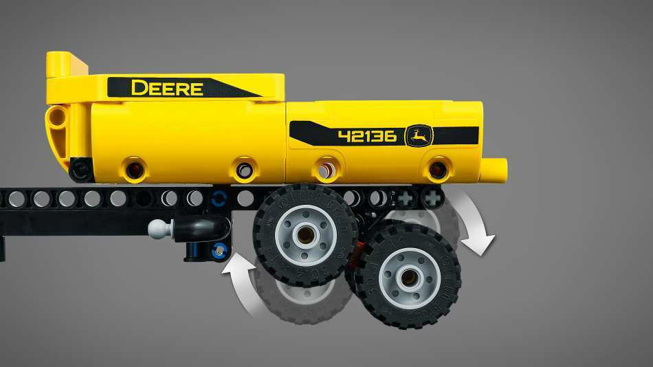 Ετοιμάσου να αντιμετωπίσεις κάθε αγροτική εργασία με το LEGO® Technic John Deere 9620R 4WD Tractor. Αυτό το μοντέλο είναι εμπνευσμένο από το πραγματικό τρακτέρ, με τεράστιους τροχούς και αρθρωτό σύστημα διεύθυνσης. Περιλαμβάνει επίσης ανατρεπόμενο τρέιλερ, ιδανικό για μετακίνηση μεγάλων φορτίων, και τροχούς παντός εδάφους για να διασχίζει κάθε επιφάνεια. Διαθέτει επίσης ράβδο έλξης με επιπλέον στροφέα για να κινείται σε λόφους και κοιλάδες.