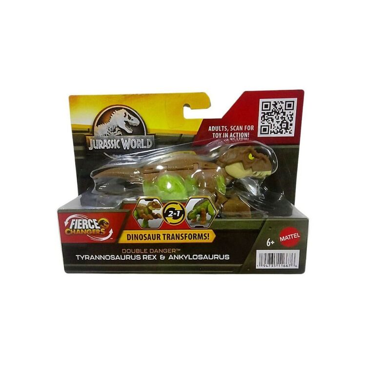 Product Mattel Jurassic World: Fierce Changers Double Danger - Tyrannosaurus Rex  Ankylosaurus (Brown) (HLP06) image