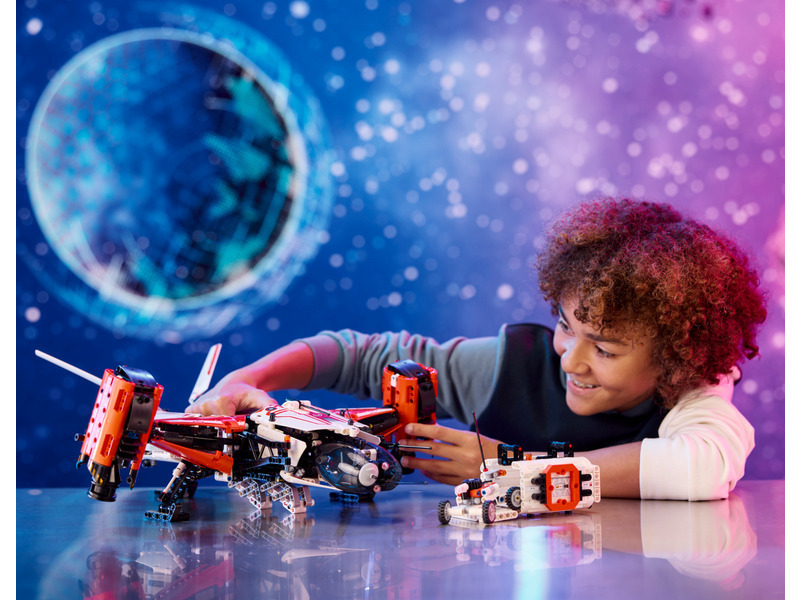 Ετοιμάσου να κατασκευάσεις ένα συναρπαστικό νέο μέλλον σε μακρινούς πλανήτες με το LEGO® Technic Διαστημόπλοιο VTOL Βαρέων Φορτίων LT81. Περίστρεψε τους κινητήρες, ανύψωσε το στον αέρα και σήκωσε το σύστημα προσεδάφισης. Μετά, κατέβασε την αρπάγη και πιάσε την κάψουλα φορτίου που περιέχει το μίνι διαστημικό ρόβερ. Αυτό το τεράστιο μηχάνημα είναι το ιδανικό όχημα για τους κόσμους του αύριο.
