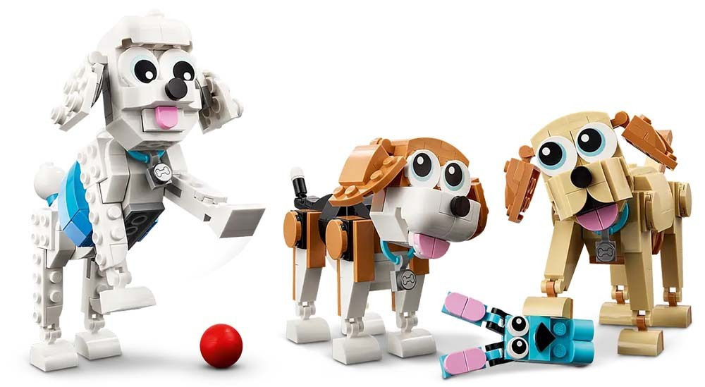 Αυτό είναι το απόλυτο σετ κατασκευής για τους λάτρεις των σκύλων! Κατασκεύασε ένα μπιγκλ, ένα κανίς ή ένα λαμπραντόρ για διασκεδαστικές βόλτες στο πάρκο με ένα μπαλάκι και ένα λουρί. Αργότερα, ανακατασκεύασέ τα σε ένα παιχνιδιάρικο μίνι σνάουζερ και ένα παγκ, ή μετάτρεψέ τα σε ένα χάσκι και ένα μακρύτριχο ντατσχάουντ. Η επιλογή είναι δική σου με αυτό το αξιαγάπητο 3σε1 σετ.