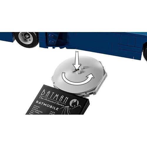 Ετοιμάσου για περιπέτειες καθώς ο Μπάτμαν™ καταδιώκει την Χάρλεϊ Κουίν™ και τον Μίστερ Φριζ™ με το Μπάτμομπιλ™ από τη σειρά Batman: The Animated Series™. Σύνδεσε τους εκτοξευτές καρφιών στο καπό, άνοιξε το κόκπιτ και βάλε τον Μπάτμαν στον πίνακα ελέγχου. Μετά τρέξε στη δράση. Όταν οι περιπέτειες τελειώσουν, βάλε το Μπάτμομπιλ στην περιστρεφόμενη βάση του για να το θαυμάσουν όλοι.