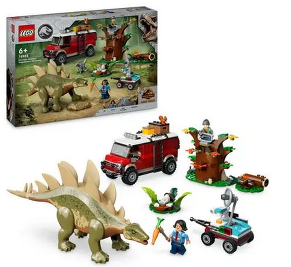 LEGO Jurassic World Dinosaur Missions: Stegosaurous Discovery (76965). Εντόπισε τον πανίσχυρο Στεγόσαυρο με τη Σάμι και τον Μπεν! Σύνδεσε το τρέιλερ, ανέβα στο εκτός δρόμου όχημα και ψάξε για το τεράστιο φυτοφάγο. Υπάρχει ένα παρατηρητήριο. Πιάσε τη σκάλα και ανέβα για να δεις αν μπορείς να βρεις τον δεινόσαυρο. Τι είναι εκεί στους θάμνους; Ο Στεγόσαυρος εμφανίστηκε. Δες αν θα φάει το καρότο, αλλά πρόσεχε! Τι μέρα! Τώρα ξεκουράσου για τις αυριανές περιπέτειες.