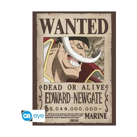 Η GB Eye παρουσιάζει αυτή την εξαιρετική αφίσα Wanted του Whitebeard από το One Piece. Η νέα αμοιβή του Whitebeard, του πιο ισχυρού άντρα στον κόσμο, φτάνει τα 5.046.000.000 berries, και η αφίσα αυτή αποτυπώνει τη δύναμη και την επιρροή του, μετά τις επιτυχίες του στον Νέο Κόσμο. Το μέγεθος της αφίσας είναι 52 x 38 εκ. και η εκτύπωση είναι λαμιναρισμένη για μεγαλύτερη αντοχή.