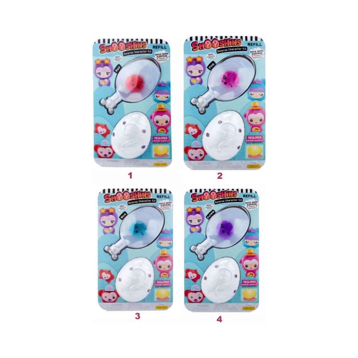 Τώρα μπορείτε να φτιάξετε μόνοι σας τους δικούς σας Smooshins ζουληχτούς χαρακτήρες! Βάλτε φαντασία και δημιουργήστε τα δικά σας πολύχρωμα Smooshins. Ποιον χαρακτήρα θα ανακαλύψετε; Συλλέξτε τους όλους και φτιάξτε κάθε φορά και έναν διαφορετικό! Πρόκειται για έναν χαρακτήρα-έκπληξη σε καλούπι που συνοδεύεται από άλλα αξεσουάρ, συμβατός με τη συσκευή Smooshins Δημιουργός Εκπλήψεων. Διατίθεται σε 4 σχέδια-έκπληξη, με το καθένα να πωλείται ξεχωριστά. Κάθε συσκευασία περιέχει: 1 Καλούπι Χαρακτήρα (έκπληξη), 1 Κάψουλα με χρώμα, 1 Σετ με αξεσουάρ έκπληξη (αξεσουάρ για το κεφάλι, προσωπάκι, κοιλίτσα), και 1 Σταντ Χαρακτήρα. Διαβάστε προσεκτικά τις οδηγίες πριν το παιχνίδι. Σημείωση: Η δημιουργία των φιγούρων μπορεί να γίνει μόνο με τη χρήση της συσκευής Smooshins Δημιουργός Εκπλήξεων, η οποία πωλείται ξεχωριστά.