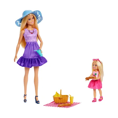 Οι κούκλες και τα παιχνίδια Barbie Family & Friends προσκαλούν τα παιδιά να μπουν στον μαγικό κόσμο της Barbie για να γιορτάσουν την οικογένεια, τη φιλία και τη διασκέδαση! Αυτό το σετ κάνει την ώρα του παιχνιδιού πικ-νικ ακόμα πιο ξεχωριστή με την κούκλα μόδας Barbie "Malibu", τη μικρή κούκλα Chelsea αδερφή και 9 αξεσουάρ με θέμα το πικνίκ! Τα παιδιά μπορούν να γεμίσουν το καλάθι με φαγητό, όπως 2 μπαγκέτες και ένα μάτσο μπανάνες. Υπάρχει επίσης μια κουβέρτα για να απλωθεί κάτω και 2 ποτά που μπορούν να κρατήσουν οι κούκλες! Η κούκλα Barbie "Malibu" φορά ένα όμορφο μωβ φόρεμα και παπούτσια, ενώ η μικρή κούκλα Chelsea είναι αξιολάτρευτη με κεράσια στην μπλούζα της, αφαιρούμενη ροζ φούστα και ασορτί παπούτσια! Τα αξεσουάρ μόδας για στυλ και αφήγηση περιλαμβάνουν ένα μεγάλο καπέλο για την Barbie "Malibu" και ένα ζευγάρι γυαλιά ηλίου σε σχήμα καρδιάς για την Chelsea! Γιορτάζοντας την οικογένεια και τους φίλους, οι κούκλες Barbie και τα σετ παιχνιδιού αποτελούν ένα υπέροχο δώρο για παιδιά και θαυμαστές ηλικίας 3 ετών και άνω!