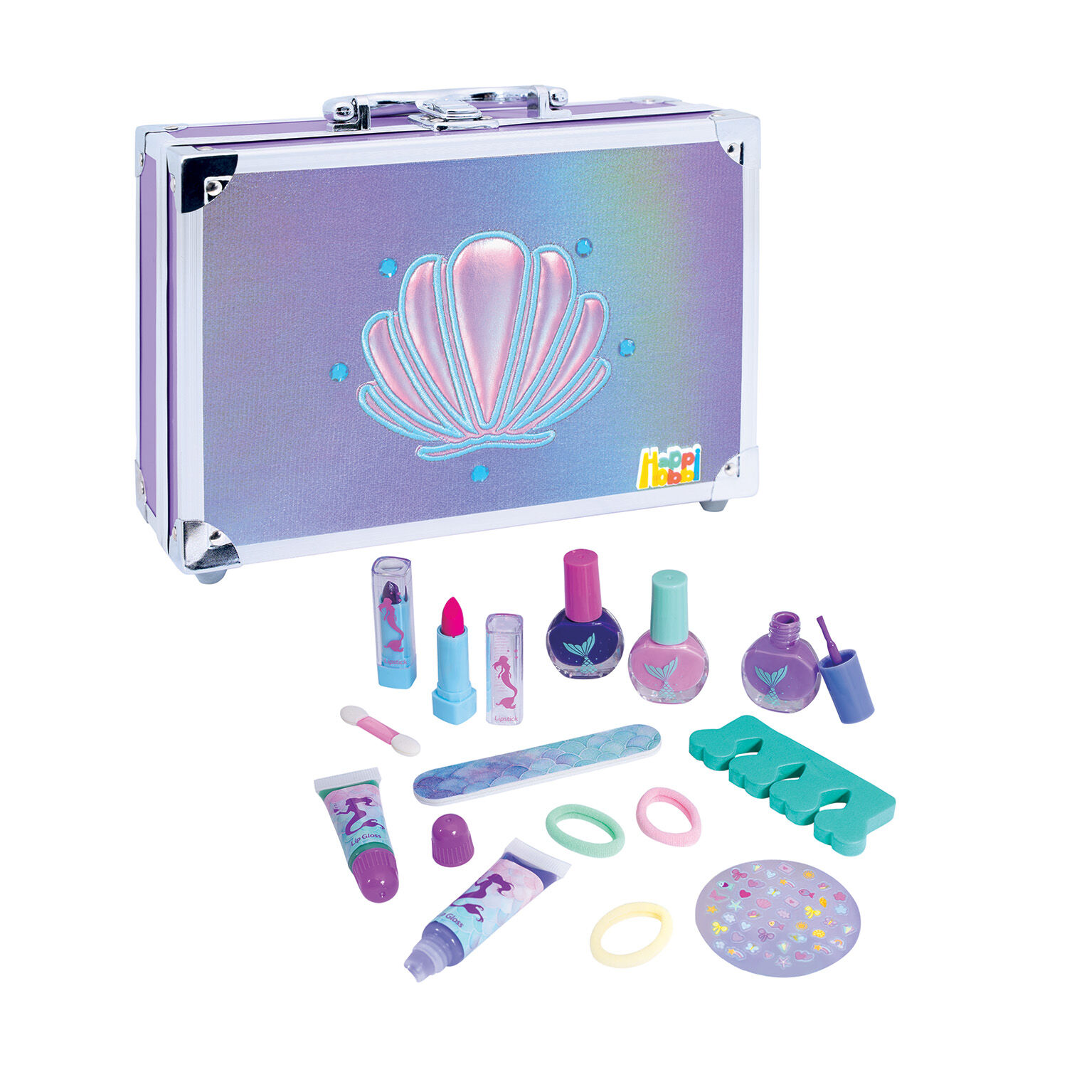 Η Happi Hobbi Θήκη Ομορφιάς με 30 Αξεσουάρ είναι το ιδανικό σετ για παιδιά που λατρεύουν την ομορφιά, τη φαντασία και τη δημιουργική έκφραση! Σε μια μεγάλη μεταλλική θήκη με καθρέφτη, περιλαμβάνει 30 διαφορετικά αξεσουάρ, που προσφέρουν ατελείωτες ώρες παιχνιδιού με φίλες, μαθαίνοντας ταυτόχρονα τα βασικά του προσωπικού στυλ και της περιποίησης.