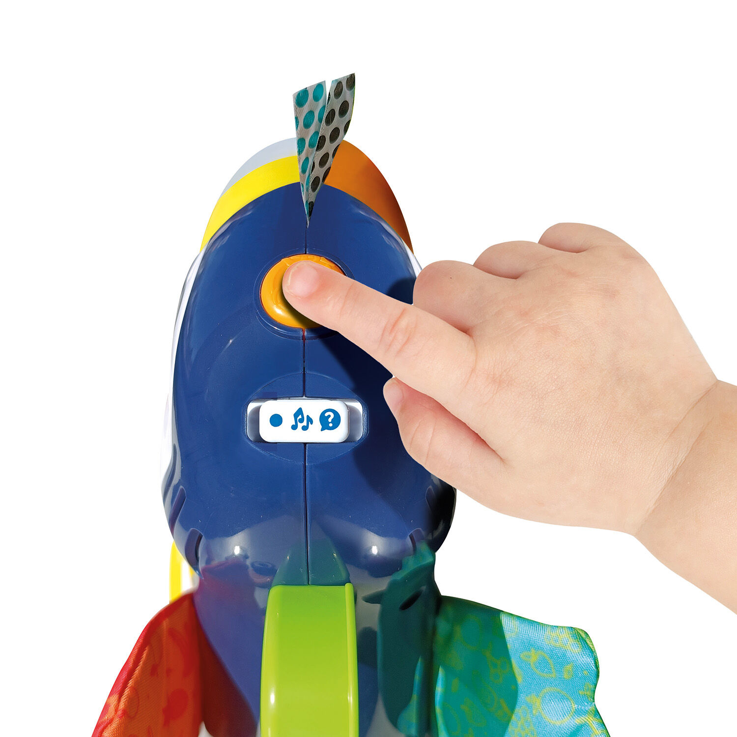 Το πιο διασκεδαστικό τουκάν γίνεται ο πρώτος εκπαιδευτικός φίλος του παιδιού σας! Το Χουάν Το Τουκάν από τη Baby Clementoni είναι ένα εκπαιδευτικό και διαδραστικό παιχνίδι, που μιλάει και τραγουδάει στα ελληνικά, προσφέροντας πλούσιο περιεχόμενο μάθησης με φρούτα, χρώματα και κουίζ. Διαθέτει 7 πολύχρωμες μάρκες-φρούτα, τις οποίες αναγνωρίζει όταν το παιδί τις τοποθετήσει στη σχισμή, και το ράμφος του φωτίζεται στο αντίστοιχο χρώμα, δημιουργώντας μια μαγική εμπειρία μάθησης και ψυχαγωγίας. Επιπλέον, λειτουργεί και ως φωτάκι νυκτός με επιλογή χρώματος, βοηθώντας στην ηρεμία και στον ύπνο.