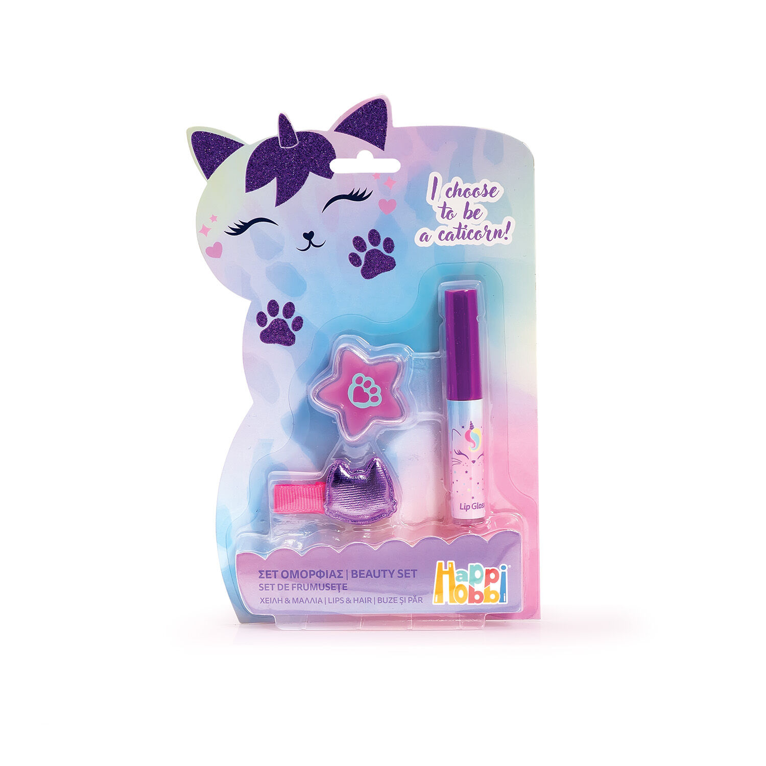 Δημιούργησε το δικό σου μοναδικό και λαμπερό beauty look! Το σετ ομορφιάς Happi Hobbi Lips & Hair είναι σχεδιασμένο για να δώσει στα παιδιά την ευκαιρία να πειραματιστούν με χρώματα και φαντασία με απόλυτη ασφάλεια, καθώς τα παιδικά καλλυντικά έχουν ελεγχθεί σύμφωνα με τις ευρωπαϊκές προδιαγραφές ασφαλείας. Ιδανικό για να αναδείξεις λαμπερά χείλη και όμορφα μαλλιά, αυτό το σετ προάγει τη δημιουργικότητα και το παιχνίδι με στυλ.