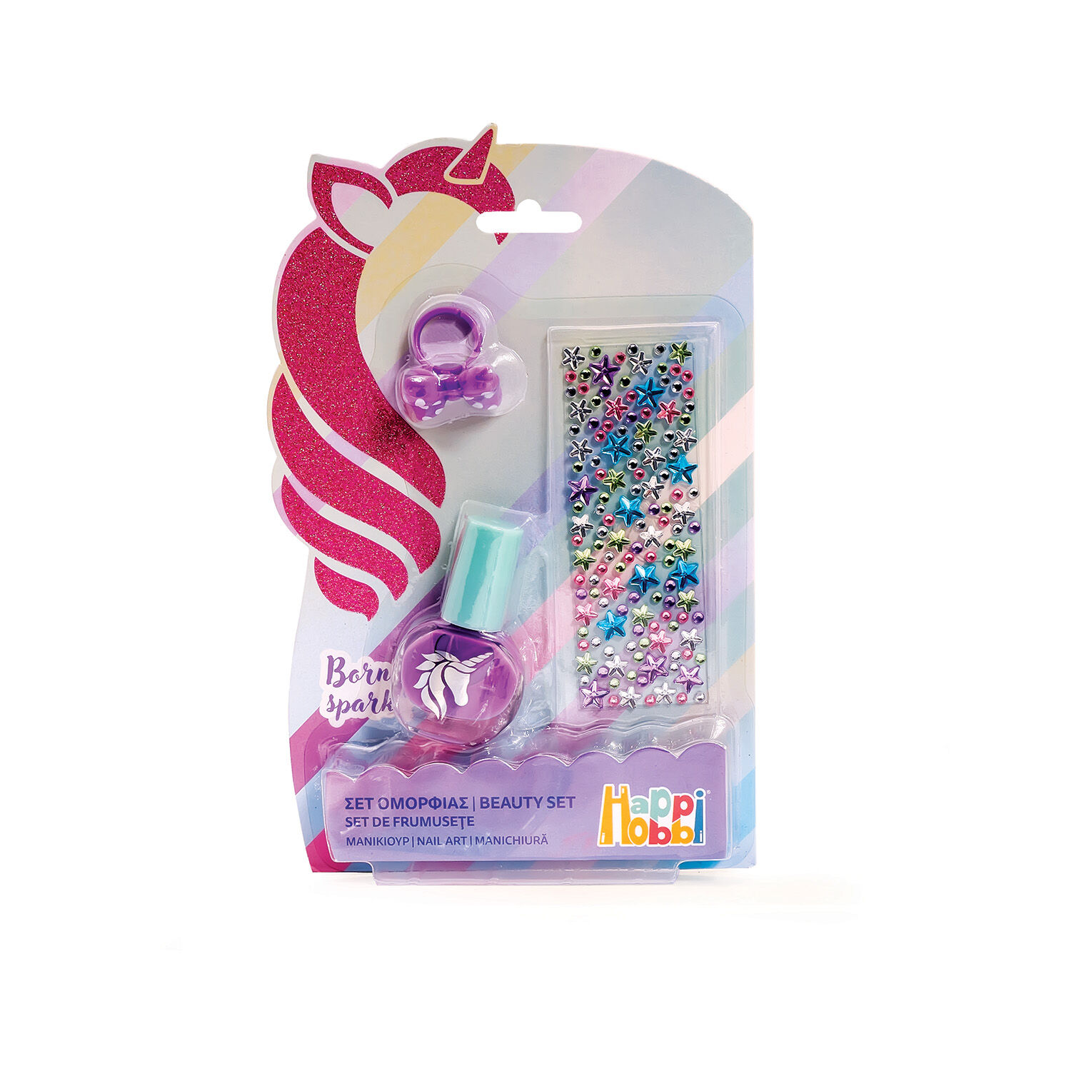 Δημιούργησε το δικό σου μοναδικό beauty look με λαμπερά νύχια και χείλη! Το παιδικό σετ ομορφιάς Born to sparkle της HappiHobbi προσφέρει μια ασφαλή και δημιουργική εμπειρία παιχνιδιού, καθώς τα καλλυντικά έχουν ελεγχθεί σύμφωνα με τις ισχύουσες ευρωπαϊκές προδιαγραφές ασφάλειας. Ιδανικό για να πειραματιστείς με χρώματα και να εκφράσεις τη φαντασία σου μέσα από το παιχνίδι.