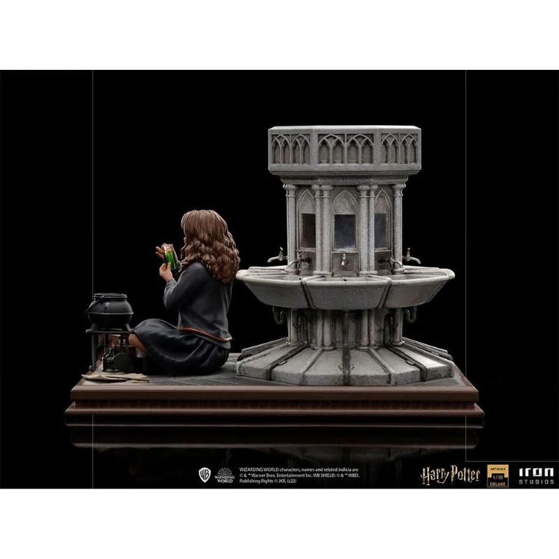 Η Iron Studios παρουσιάζει τη Hermione Granger Polyjuice Deluxe Version, ένα συλλεκτικό άγαλμα Art Scale 1/10 που αναπαριστά μία από τις πιο αξέχαστες σκηνές από την ταινία Harry Potter and the Chamber of Secrets (2002). Στο στοιχειωμένο μπάνιο της Myrtle, στον δεύτερο όροφο του Χόγκουαρτς, η Ερμιόνη κάθεται μπροστά από τις σχάρες και το παλιό νιπτήρα, έχοντας στο πλάι της μια μικρή κατσαρόλα, φίλτρα, ένα κουτί γεμάτο υλικά και φυσικά τη ράβδο της, ενώ ετοιμάζει το πανίσχυρο Πολυχημικό Φίλτρο (Polyjuice Potion). Η στιγμή αυτή σηματοδοτεί την απόφασή της να μεταμορφωθεί για να βοηθήσει στη διερεύνηση της Αίθουσας με τα Μυστικά.