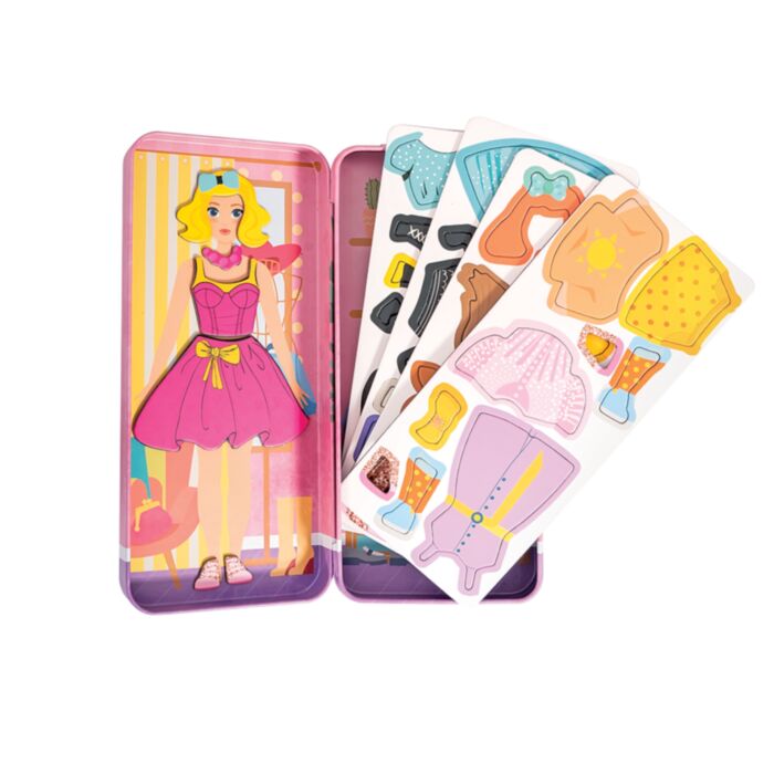 Η θεματική "Fashion Girl" προσκαλεί τους μικρούς παίκτες να δημιουργήσουν μοδάτες εμφανίσεις, παίζοντας με διαφορετικά στυλ και looks. Το μέγεθος της κασετίνας κάνει το παιχνίδι ιδανικό για μεταφορά και απασχόληση εκτός σπιτιού.