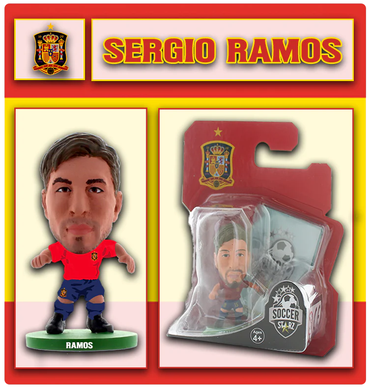 Η φιγούρα Sergio Ramos SoccerStarz απεικονίζει τον θρυλικό Ισπανό αμυντικό φορώντας την κλασική κόκκινη φανέλα της εθνικής ομάδας της Ισπανίας. Με ύψος περίπου 5 εκατοστά και πράσινη βάση, αυτή η συλλεκτική φιγούρα αποτελεί εξαιρετική προσθήκη σε κάθε συλλογή φιγούρων ποδοσφαίρου. Ο Sergio Ramos είναι γνωστός για την ηγετική του παρουσία, τη δύναμη και τις καθοριστικές του στιγμές στην άμυνα και επιθετικά, όντας ένας από τους κορυφαίους αμυντικούς στην ιστορία.