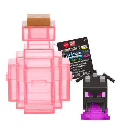 Η μαγεία του Minecraft αποκτά χρώμα και γλοιώδη υφή με το ροζ φίλτρο Slimy Brew! Η σειρά Mini Mode - Potion Brewing της Mattel προσφέρει μοναδικές στιγμές αποσυσκευασίας γεμάτες έκπληξη, slime και μεταμορφώσεις με Colour Reveal! Το ροζ δοχείο σε σχήμα φίλτρου περιέχει μια τυχαία μίνι φιγούρα Minecraft, καθώς και ένα φακελάκι Slimy Brew Potion Particles.