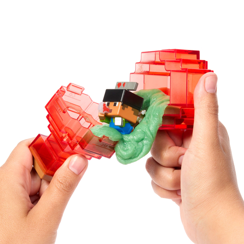 Απλώς προσθέστε νερό (δεν περιλαμβάνεται), ρίξτε τα Potion Particles και ανακινήστε δυνατά. Όταν ανοίξετε ξανά το δοχείο, η φιγούρα έχει μεταμορφωθεί μέσα στο slime με νέο look, παραμένοντας πιστή στο κλασικό pixel στυλ του Minecraft. Ένα must-have για κάθε μικρό gamer ή συλλέκτη, με πολλές παραλλαγές για να τις αποκτήσετε όλες!