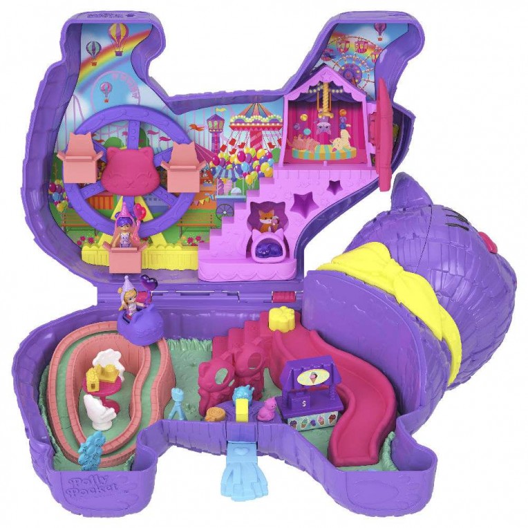 Είναι ώρα για πάρτι με την Polly Pocket στο σετ παιχνιδιού Celebration Kitty piñata! Λάβετε μέρος στις γιορτές με δύο μικρο-κούκλες και 23 αξεσουάρ-έκπληξη, συμπεριλαμβανομένων γατών-κατοικίδιων. Τραβήξτε το σχοινί για να ανοίξετε το σετ παιχνιδιού και παρακολουθήστε καθώς κομφετί και πακέτα αξεσουάρ πέφτουν έξω – έκπληξη! Το γατίσιο εξωτερικό της piñata ανοίγει σε μια συναρπαστική γιορτή όπου οι κούκλες μπορούν να απολαύσουν τη θέα από τη ρόδα λούνα παρκ, να παίξουν παιχνίδια μέσα στη σκηνή, να κάνουν βόλτα στο τρενάκι του λούνα παρκ, και πολλά άλλα! Το πάρτι δεν τελειώνει ποτέ με την Polly Pocket και τους φίλους της! Ιδανικό για ηλικίες 4 ετών και άνω, ειδικά για όσους αγαπούν τα λούνα παρκ, τις γάτες και τις εκπλήψεις.