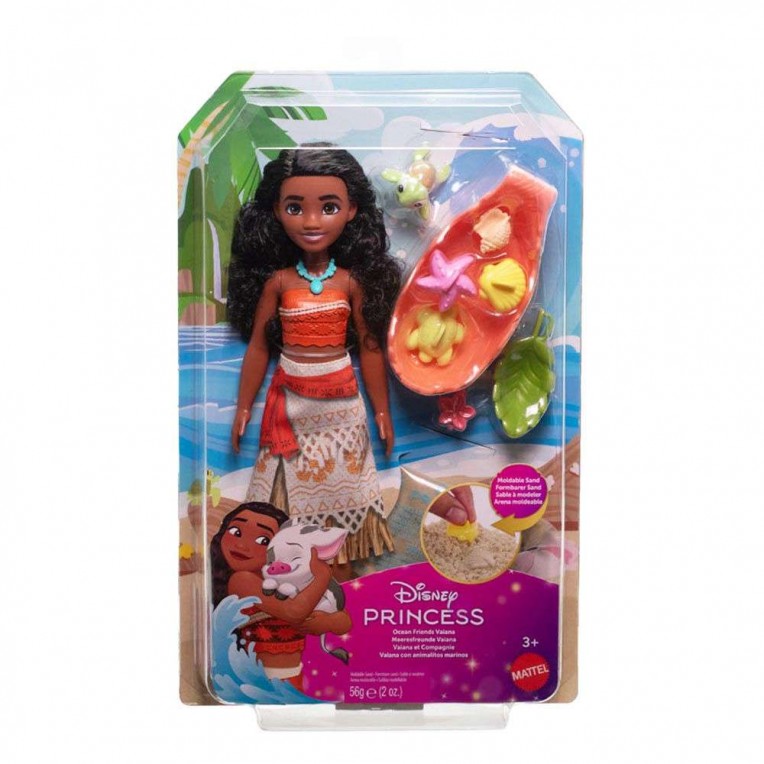 Η Vaiana είναι έτοιμη για μια περιπέτεια στην παραλία! Αυτό το όμορφο σετ περιλαμβάνει την κούκλα Moana, μια φιλική χελώνα, διασκεδαστικά θαλάσσια πλάσματα και ένα καλάθι γεμάτο εύπλαστη άμμο – ιδανική για αισθητηριακό και δημιουργικό παιχνίδι. Τα παιδιά μπορούν να δημιουργήσουν, να χτίσουν και να φανταστούν αμέτρητες ιστορίες καθώς η απαλή και εύπλαστη άμμος επιτρέπει ατελείωτο παιχνίδι ξανά και ξανά! Οι φίλοι της σειράς μπορούν να βρουν κι άλλες κούκλες Disney Princess και σετ παιχνιδιού για να δημιουργήσουν τον μαγικό τους κόσμο.