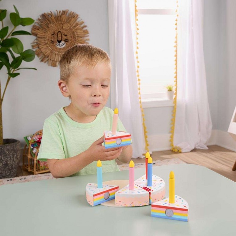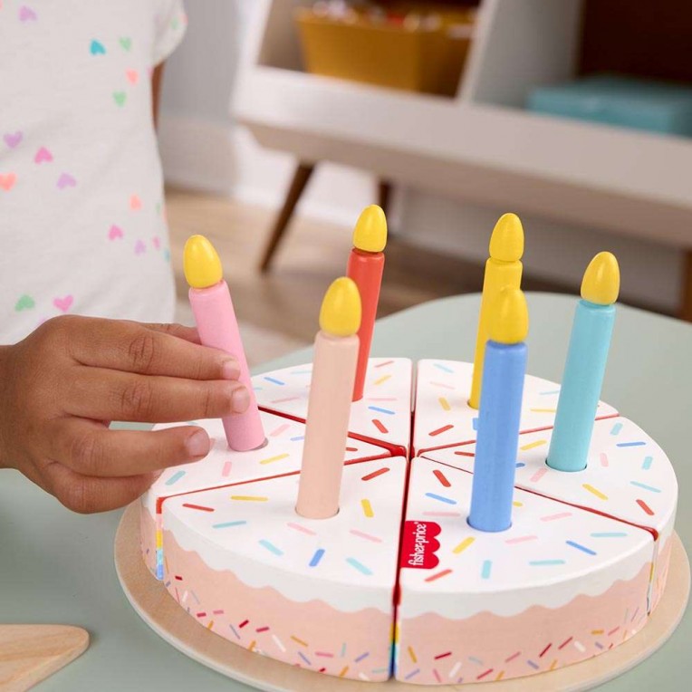 Κάθε μέρα παιχνιδιού γίνεται ένα αληθινό πάρτι με το ξύλινο σετ τούρτας της Fisher-Price. Αυτό το σετ 14 τεμαχίων για προσποιητό φαγητό περιλαμβάνει 6 φέτες τούρτας που συνδέονται μεταξύ τους, καθώς και 6 αφαιρούμενα κεριά, έναν δίσκο σερβιρίσματος και ένα μαχαίρι τούρτας. Τα παιδιά θα λατρέψουν να διακοσμούν, να κόβουν και να σερβίρουν την τούρτα ξανά και ξανά, δημιουργώντας ατελείωτες γιορτινές στιγμές. Κάθε κομμάτι είναι φτιαγμένο από ξύλο πιστοποιημένο από το FSC (FSC-N004566) και διακοσμημένο με μη τοξικό, νερού βάσης χρώμα. Δεν προορίζεται για χρήση με πραγματικά τρόφιμα. Τα χρώματα και οι διακοσμήσεις μπορεί να διαφέρουν.