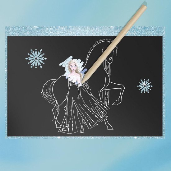 Δημιούργησε τις πιο μαγικές δημιουργίες Frozen με αυτό το υπέροχο βιβλίο δραστηριοτήτων με σπιράλ και σκληρό εξώφυλλο! Ξύσε την ειδική μαύρη επιφάνεια για να αποκαλύψεις λαμπερά σχέδια με τις αγαπημένες σου φιγούρες Frozen, όπως την Elsa και την Anna. Στην πίσω πλευρά κάθε φύλλου θα βρεις εικονογραφημένες σελίδες για χρωματισμό, αυτοκόλλητα, πανάχρηστο στένσιλ και ειδικό εργαλείο ξυσίματος. Ιδανικό για δημιουργικό παιχνίδι στο σπίτι, στο ταξίδι ή στις διακοπές!