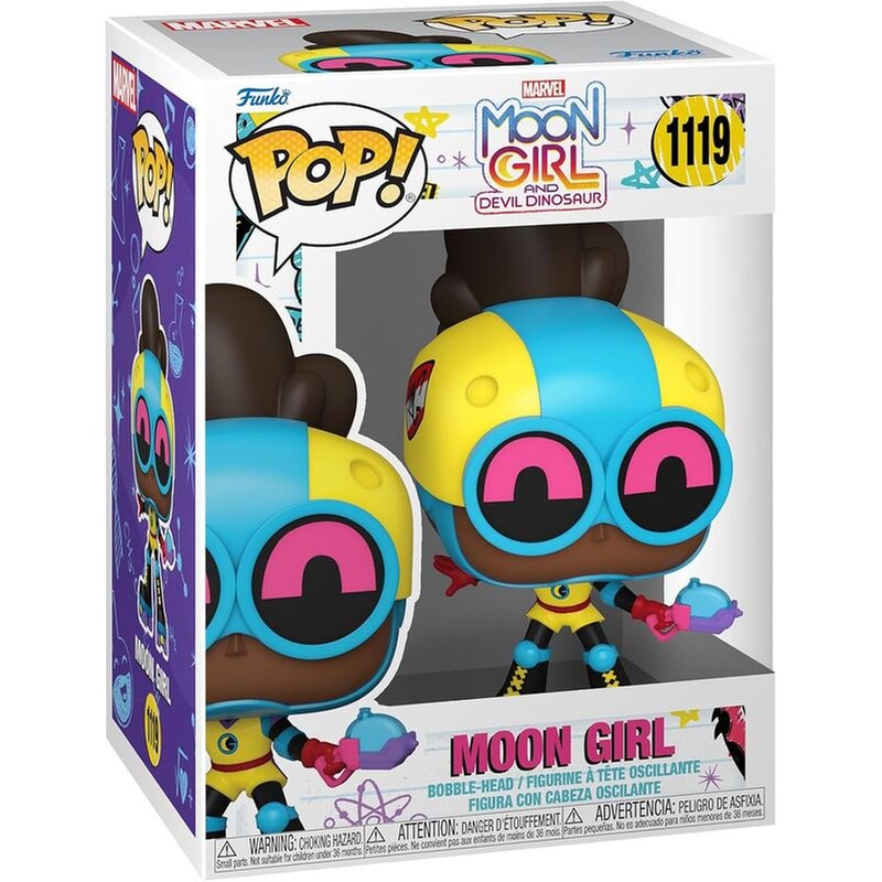 Το Funko Pop! Marvel: Moon Girl and Devil Dinosaur S1 - Moon Girl #1119 παρουσιάζει την εννιάχρονη ιδιοφυΐα Lunella Lafayette, η οποία μπορεί να ανταλλάζει μυαλά με τον τεράστιο κόκκινο δεινόσαυρό της ενώ χρησιμοποιεί τις μοναδικές της ικανότητες για να προστατεύει τον κόσμο ως η σούπερ ηρωίδα Moon Girl. Με τα ρολάκια της και τον ζωντανό, πολύχρωμο στολισμό της στολής, η Moon Girl είναι έτοιμη να συμμετάσχει σε κάθε περιπέτεια. Η φιγούρα αποτυπώνει τέλεια την ενέργεια και τον χαρακτήρα της, καθιστώντας την απαραίτητη προσθήκη σε κάθε συλλογή Marvel, δίπλα στον πιστό της φίλο, Devil Dinosaur.