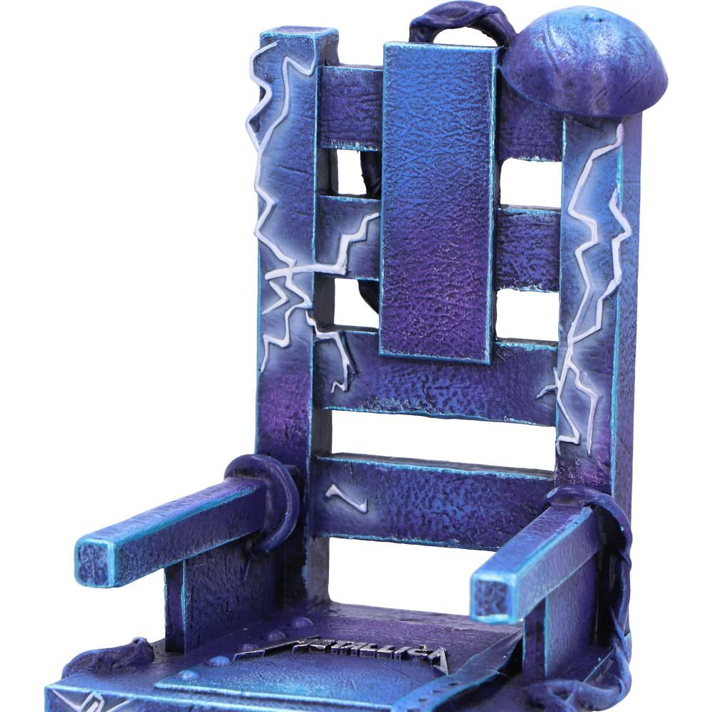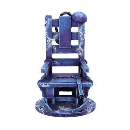 Η φωτεινή και δυναμική φιγούρα “Ride the Lightning” φέρνει την ενέργεια και την ισχύ των Metallica κατευθείαν στη συλλογή σας. Το κεντρικό στοιχείο της φιγούρας είναι μια μπλε ηλεκτρική καρέκλα, εμπνευσμένη από το εμβληματικό εξώφυλλο του δεύτερου άλμπουμ των Metallica, με το λογότυπο της μπάντας στο κέντρο και περίτεχνες λευκές γραμμές ηλεκτρισμού, που αναπαριστούν την ηλεκτρισμένη ατμόσφαιρα του άλμπουμ. Κάθε φιγούρα χυμένη από υψηλής ποιότητας ρητίνη και βαμμένη προσεκτικά στο χέρι, εξασφαλίζοντας ότι κάθε λεπτομέρεια είναι άψογη.