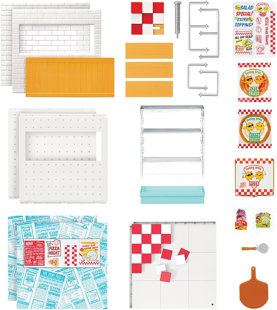 Το σετ διαθέτει μοναδικό θέμα πίτσας, αλλά τα παιδιά μπορούν να προσαρμόσουν το χώρο σε ό,τι φανταστούν: από καφέ μέχρι pet shop ή ακόμα και θεματικά πάρτι. Περιλαμβάνει 2 πάνελ τοίχου, 1 δάπεδο, 2 σχέδια ταπετσαρίας, πλακάκια, έπιπλα και εκπλήξεις για να ζωντανέψει η σκηνή. Οι οδηγίες συναρμολόγησης περιέχουν tips για εξατομίκευση, ενώ τα σετ μπορούν να συνδυαστούν μεταξύ τους για να δημιουργήσουν ένα πολυεπίπεδο Maxiverse.