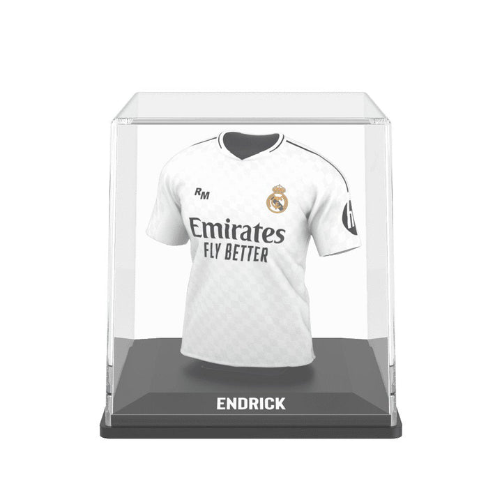 Η φιγούρα αναπαριστά τη λευκή φανέλα της σεζόν 2024/25, φορεμένη από έναν από τους πιο υποσχόμενους νέους επιθετικούς στον κόσμο. Ο Endrick, γνωστός για την εκρηκτική ταχύτητα, την τεχνική του και την ικανότητα στο σκοράρισμα, στοχεύει να αφήσει το στίγμα του στη νέα εποχή της Real Madrid.