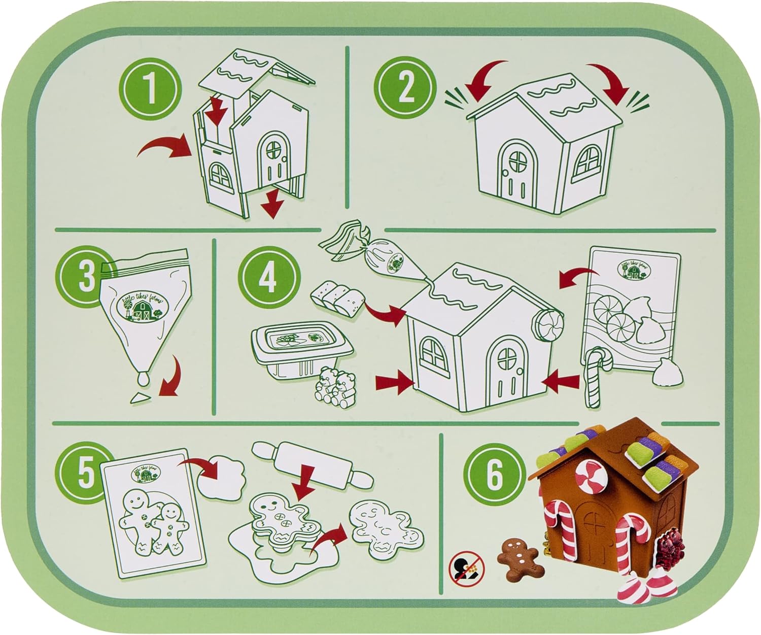 Το Little Tikes Creative Chef - Gingerbread House Kit φέρνει την εορταστική μαγεία της ζαχαροπλαστικής στα χέρια των παιδιών! Αυτό το ρεαλιστικό σετ μαγειρικής επιτρέπει στα παιδιά να ανακαλύψουν το πάθος τους για τη μαγειρική και να εκφράσουν τη δημιουργικότητά τους, ενώ μαθαίνουν τα βασικά της παρασκευής γλυκών. Με λεπτομερείς κουτάλες και τα ειδικά συστατικά Make-It! Mix, τα παιδιά ακολουθούν τη διαδικασία βήμα-βήμα για να δημιουργήσουν ένα εντυπωσιακό gingerbread house, μετατρέποντας το παιχνίδι σε πρακτική δεξιότητα.