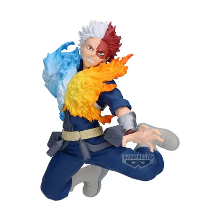 - Λεπτομέρεια: Shoto Todoroki σε δυναμική στάση με φωτιά και πάγο, πιστή στη σειρά