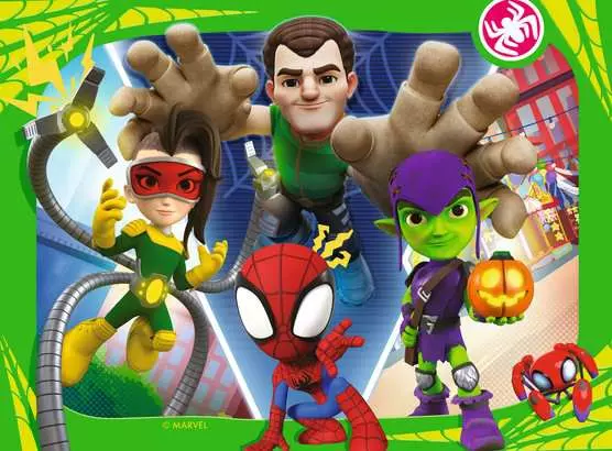 Το Ravensburger Marvel Puzzle: Spidey and his Amazing Friends - It's Spidey Time! (4in1) σας προσκαλεί να συμμετάσχετε σε ζωντανές, γεμάτες δράση περιπέτειες μαζί με τους Spidey, Ghost Spider, Spin, Hulk, Ant-Man, Sandman, Doc Ock, Green Goblin, Trace-e, Black Panther και Iron-Man, συναρμολογώντας τα τέσσερα παζλ ενός κουτιού, το καθένα με διαφορετικές, έντονα χρωματιστές και γεμάτες δράση σκηνές. Ιδανικό για μικρούς φαν του Spidey & His Amazing Friends, αυτό το σετ προσφέρει ποιοτική κατασκευή και διασκέδαση για ώρες. Με υψηλής ποιότητας υλικά, κάθε παζλ ολοκληρώνεται σε 19 x 14 cm, και είναι κατάλληλο για ηλικίες 3+, ενώ πληροί όλα τα απαραίτητα πρότυπα ασφαλείας Ηνωμένου Βασιλείου και Ε.Ε.