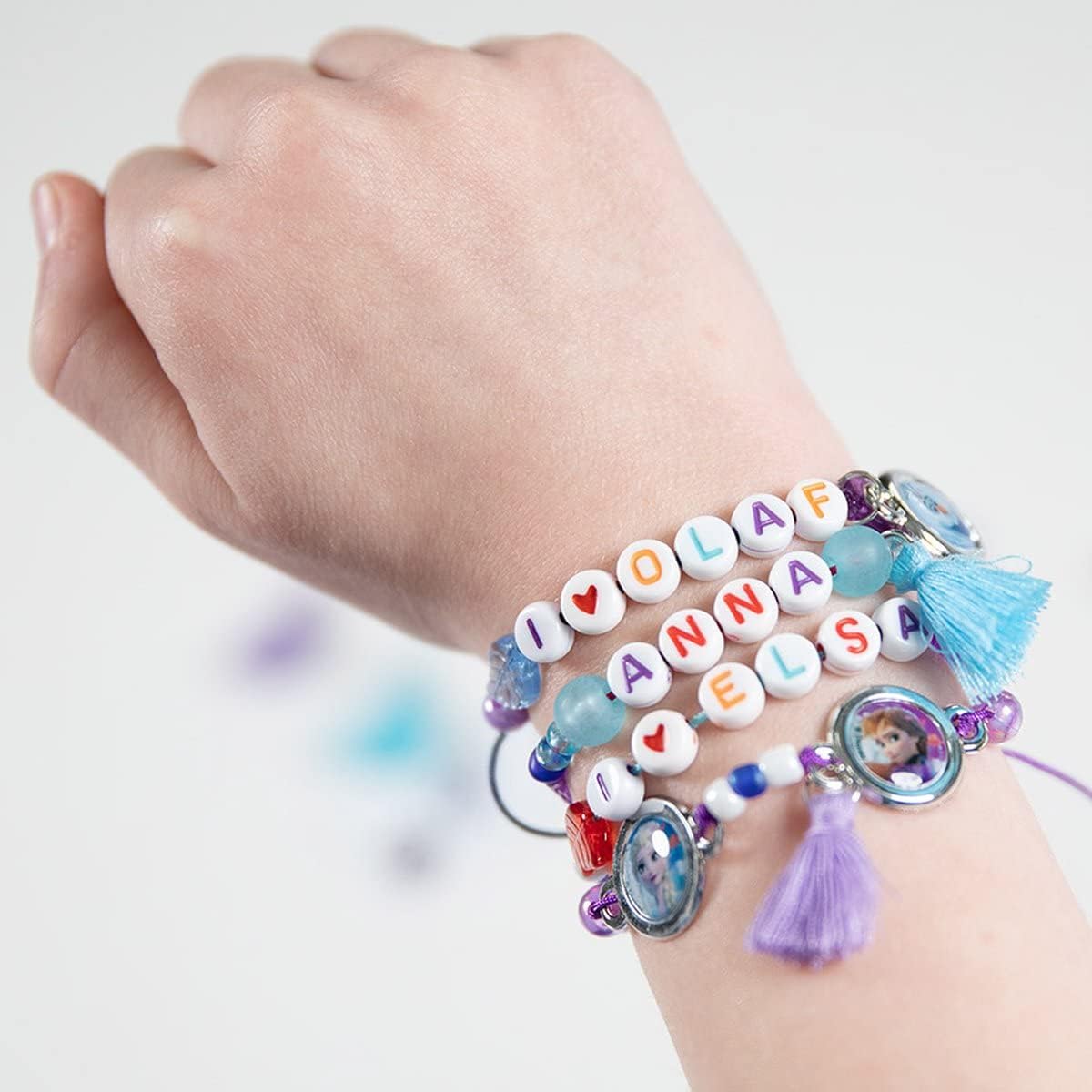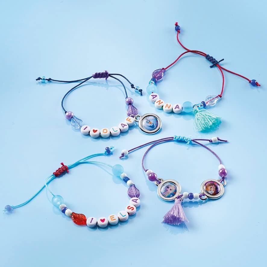 - Αξεσουάρ: 14 γράμματα, 2 χάντρες με καρδιά, 2 πομπόν, 6 χάντρες φτερά, πάνω από 30 χάντρες σε διάφορα χρώματα και σχήματα, 3 μενταγιόν με 4 αυτοκόλλητα Frozen, 4 χρωματιστά κορδόνια