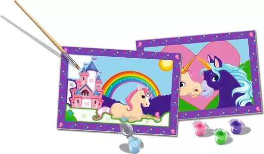 Το Παιχνίδι Ζωγραφικής Ravensburger CreArt Jr - Unicorns φέρνει δημιουργική διασκέδαση και μαγεία στον κόσμο των παιδιών με το σετ «Μαγικά Μονόκερα» Paint by Numbers. Παρακολουθήστε τα μάτια των παιδιών να λάμπουν καθώς δημιουργούν τα δικά τους εντυπωσιακά έργα τέχνης! Το σετ περιλαμβάνει όλα όσα χρειάζονται για να ολοκληρώσουν το έργο τους, με μεγάλα, χρωματικά περιγεγραμμένα τμήματα που διευκολύνουν την επιτυχία και κρατούν τα παιδιά αφοσιωμένα. Κάθε περιοχή αριθμείται ώστε να ταιριάζει με τα μη τοξικά χρώματα, εξασφαλίζοντας τέλεια αποτελέσματα. Τα προτυπωμένα πλαίσια δίνουν τη δυνατότητα να εκθέσετε με περηφάνια τα έργα των μικρών καλλιτεχνών.