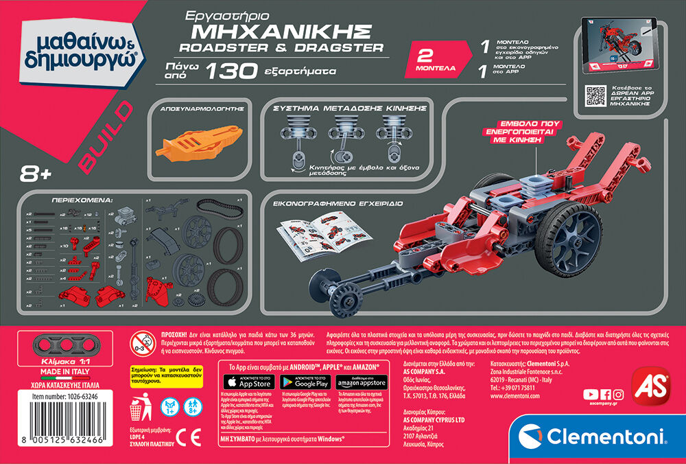 Εκπαιδευτικό Παιχνίδι AS Clementoni Μαθαίνω & Δημιουργώ Build: Εργαστήριο Μηχανικής - Roadster & Dragster (1026-63246)