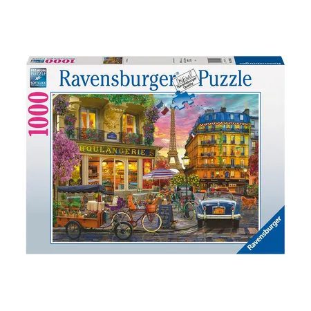 Το Παζλ Ravensburger Puzzle: Paris in the Dawn (1000pcs) (12000885) σας προσκαλεί να ξεφύγετε από το καθημερινό άγχος και να απολαύσετε την μαγεία του Παρισιού την αυγή μέσα από ένα ήρεμο και όμορφο παζλ 1.000 κομματιών. Η εικόνα απεικονίζει την πόλη του φωτός με τον ήλιο να ανατέλλει και τον Πύργο του Άιφελ να δεσπόζει επιβλητικά, ενώ η ατμόσφαιρα ενός παραδοσιακού boulangerie προσθέτει ζωντάνια στη σκηνή.