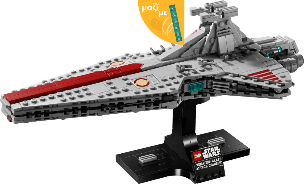 LEGO Star Wars Venator-Class Attack Cruiser (75441). Αποτυπώστε τον αεροδυναμικό σχεδιασμό ενός καταδρομικού Venator με αυτό το σετ κατασκευής μοντέλου αστρόπλοιου (75441). Χρησιμοποιήστε LEGO® τουβλάκια για να αναδημιουργήσετε τις αυθεντικές λεπτομέρειες ενός από τα πιο ευέλικτα αστρόπλοια του στόλου της Γαλαξιακής Δημοκρατίας. Ξαναζήστε σκηνές από το Star Wars: Revenge of the Sith καθώς βυθίζεστε σε αυτήν τη σύνθετη και απολαυστική κατασκευή. Επιδείξτε το εντυπωσιακό καταδρομικό σας πάνω στην κατασκευάσιμη βάση με μια πινακίδα ονόματος. Αυτό το σετ είναι τμήμα της μεσαίου μεγέθους συλλογής αστρόπλοιων LEGO Star Wars™ Starship Collection και ένα υπέροχο δώρο για εσάς ή άλλους ενήλικες φαν της τριλογίας των πρίκουελ. Απολαύστε βελτιωμένες κατασκευές με την εφαρμογή LEGO Builder, ζουμάροντας και περιστρέφοντας με 3D οδηγίες ενώ αποθηκεύετε και παρακολουθείτε την πρόοδο – όλα από την εφαρμογή. Το σετ περιέχει 643 τεμάχια.