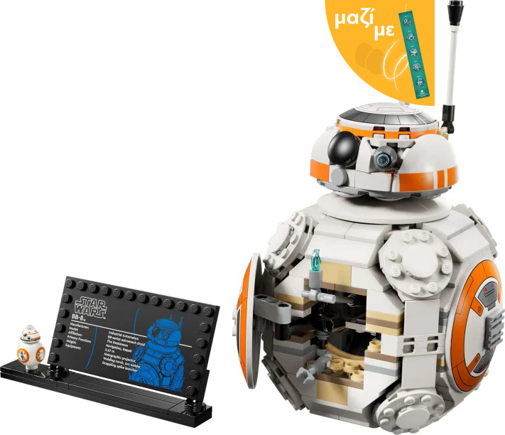 LEGO Star Wars BB-8 Astromech Droid (75452). Χρησιμοποιήστε LEGO τουβλάκια για να αποτυπώσετε αυθεντικές λεπτομέρειες του εμβληματικού ανδροειδούς, όπως εμφανίζεται στο Star Wars: The Force Awakens. Μετακινήστε τον BB-8 σε μια επίπεδη επιφάνεια για να κάνετε το κεφάλι του να γυρίσει προς διάφορες κατευθύνσεις. Ανοίξτε τη θυρίδα στο σώμα του BB-8 και αποκαλύψτε έναν «βραχίονα φλογοβόλο», σαν εκείνον που χρησιμοποίησε για να επιβραβεύσει τον Finn. Τοποθετήστε το κατασκευάσιμο μοντέλο δίπλα στην πινακίδα πληροφοριών για τον BB-8 και την κανονικού μεγέθους LEGO φιγούρα του BB-8 και δημιουργήστε ένα αξιολάτρευτο διακοσμητικό Star Wars που θα κάνει κάθε φαν να χαμογελά. Αυτό το σετ κατασκευής παιχνιδιού είναι εξαιρετικό δώρο για αγόρια και κορίτσια ηλικίας 10 ετών και άνω. Και μπορούν επίσης να απολαύσουν απλή κατασκευή με την εφαρμογή LEGO Builder, ζουμάροντας και περιστρέφοντας με 3D οδηγίες, ενώ αποθηκεύουν και παρακολουθούν την πρόοδο – όλα από την εφαρμογή. Το σετ περιέχει 569 τεμάχια.