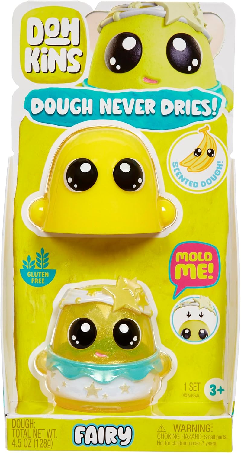 Απελευθερώστε τη φαντασία με το σετ DohKins Fairy Dough Molds! Οι φιγούρες κατασκευάζονται με την αποκλειστική πλαστελίνη Never-Dry Dough, η οποία δεν ξεραίνεται, δεν σπάει και παραμένει μαλακή με υπέροχο άρωμα για ατελείωτο δημιουργικό παιχνίδι. Κάθε χαρακτήρας διαθέτει ξεχωριστό άρωμα, προσφέροντας μοναδική εμπειρία παιχνιδιού. Τα συμπεριλαμβανόμενα καλούπια επιτρέπουν στα παιδιά να δημιουργήσουν, πλάσουν και μορφοποιήσουν τις φιγούρες. Οι συσκευασίες διπλής χρήσης λειτουργούν και ως αποθήκευση για την πλαστελίνη μετά το παιχνίδι. Το σετ περιλαμβάνει εργαλεία για κύλισμα, πλάσιμο και σφράγιση, καθώς και εργαλείο εξώθησης για δημιουργία στρογγυλών σχημάτων. Η πλαστελίνη είναι χωρίς γλουτένη, κατάλληλη για παιδιά 3+ ετών, και ενισχύει τη φαντασία και τις λεπτές κινητικές δεξιότητες των παιδιών.