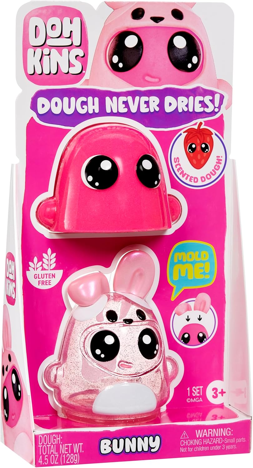 Ζήστε μια μαγική εμπειρία δημιουργίας με το σετ DohKins Bunny Dough Molds! Η αποκλειστική Never-Dry Dough παραμένει μαλακή, αρωματισμένη και δεν σκληραίνει ποτέ, προσφέροντας ατελείωτες ώρες φανταστικού παιχνιδιού. Τα παιδιά μπορούν να πλάσουν, μορφοποιήσουν και δημιουργήσουν χαριτωμένα λαγουδάκια χρησιμοποιώντας τα περιλαμβανόμενα καλούπια, τα οποία διπλασιάζονται και ως αποθηκευτικοί χώροι όταν τελειώσει το παιχνίδι. Το σετ ενισχύει τη δημιουργικότητα, τη φαντασία και τις δεξιότητες λεπτής κινητικότητας των παιδιών.