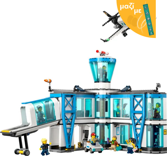 Το παιχνίδι απογειώνεται με το σετ κατασκευής LEGO City Airport With Airplane (60502) για παιδιά ηλικίας 8 ετών και άνω. Αυτό το λεπτομερές μοντέλο αεροδρομίου είναι γεμάτο με χαρακτηριστικά για παιχνίδι μίμησης. Τα παιδιά περνούν τις αποσκευές από τον σαρωτή, περιστρέφουν τον θάλαμο του ανιχνευτή μετάλλων για να αποκαλύψουν την ακτινογραφία ενός σκελετού και αλλάζουν την οθόνη αναχωρήσεων για να επιλέξουν ανάμεσα σε 4 προορισμούς. Το σετ περιλαμβάνει επίσης ένα απίθανο επιβατικό αεροπλάνο με λεπτομερή καμπίνα και σκάλα που ξεδιπλώνει, καθώς και ρυμουλκό αεροδρομίου και γέφυρα επιβίβασης. Απλώς προσθέστε τις 9 μίνι φιγούρες και απολαύστε ευρηματικό παιχνίδι. Αυτό το παιχνίδι με αεροδρόμιο είναι εξαιρετική ιδέα δώρου για αγόρια και κορίτσια που αγαπούν τα μοντέλα αεροπλάνων και τα LEGO σετ κατασκευής. Προσθέστε το σε άλλα σετ (πωλούνται χωριστά) από τη σειρά LEGO City για ακόμα μεγαλύτερες περιπέτειες. Ενώστε δυνάμεις με φίλους και την οικογένεια με τη λειτουργία Build Together στην εφαρμογή LEGO Builder, όπου όλοι διασκεδάζουν κατασκευάζοντας ένα τμήμα του σετ χρησιμοποιώντας τις δικές τους συσκευές. Το σετ περιέχει 887 τεμάχια.