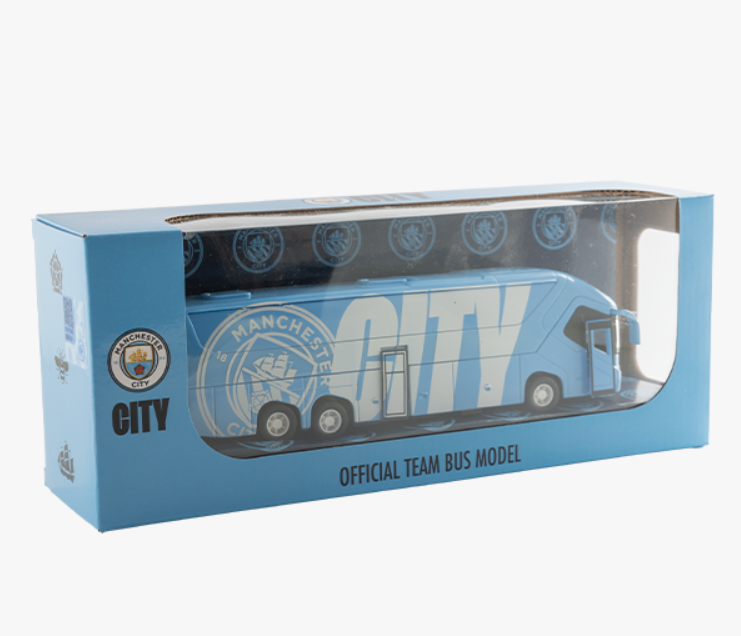 Αποκτήστε την πιστή ρέπλικα του λεωφορείου της Manchester City και φέρτε τη δράση του συλλόγου στο σπίτι σας. Το λεωφορείο διαθέτει άνοιγμα πλαϊνών θυρών και αναστροφή με τριβή, προσφέροντας ρεαλιστική εμπειρία παιχνιδιού. Πρόκειται για προϊόν με επίσημη άδεια του συλλόγου, ιδανικό για μικρούς φίλους της ομάδας.