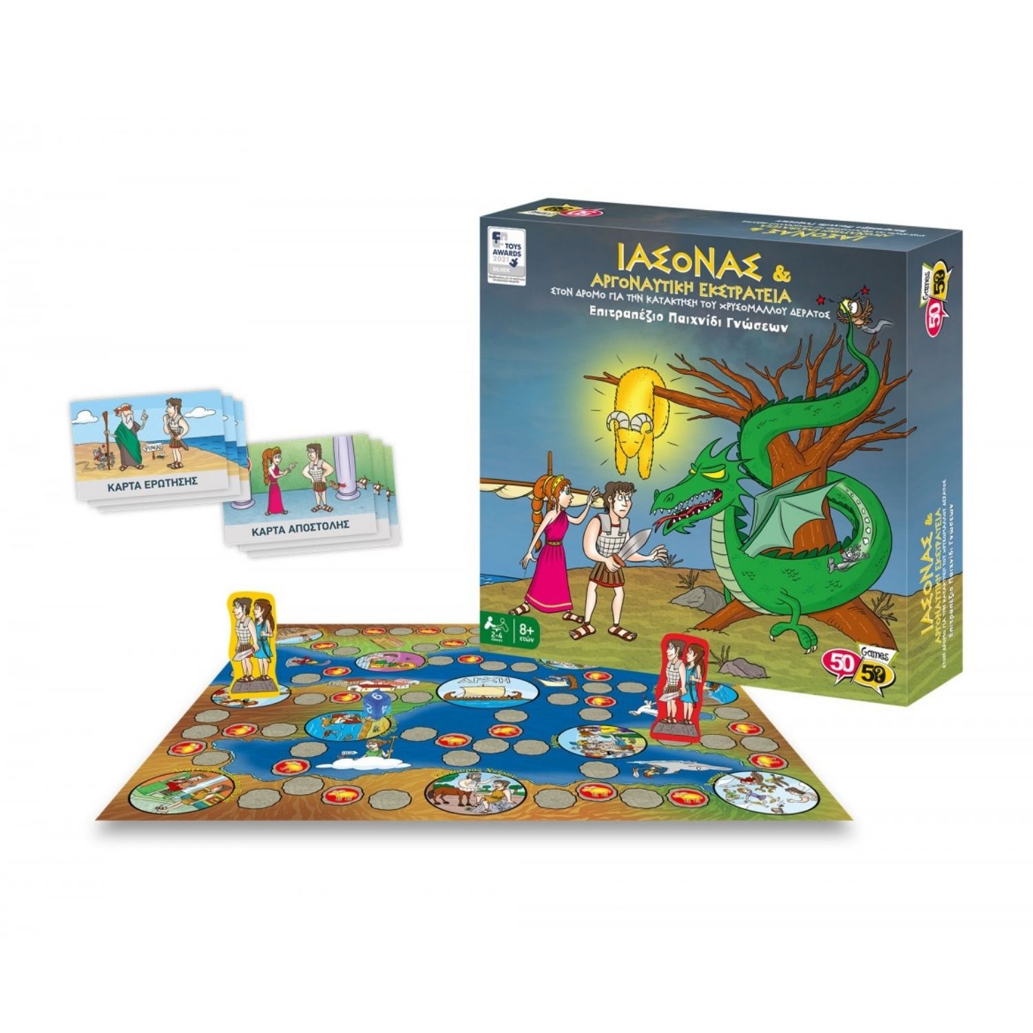 Μόλις φτάσεις σε μια περιπέτεια, θα πρέπει να απαντήσεις σωστά σε μια κάρτα ερωτήσεων για να την αποκτήσεις τοποθετώντας το σύμβολό σου. Πρόσεχε όμως! Ο Πελίας και ο Αιήτης δεν είναι τόσο φιλικοί μαζί σου όσο φαίνονται. Σε περιμένουν μεγάλες δυσκολίες για να φτάσεις στον στόχο σου! Απόκτησε όσες περισσότερες περιπέτειες μπορείς και φέρε πίσω το Χρυσόμαλλο δέρας!