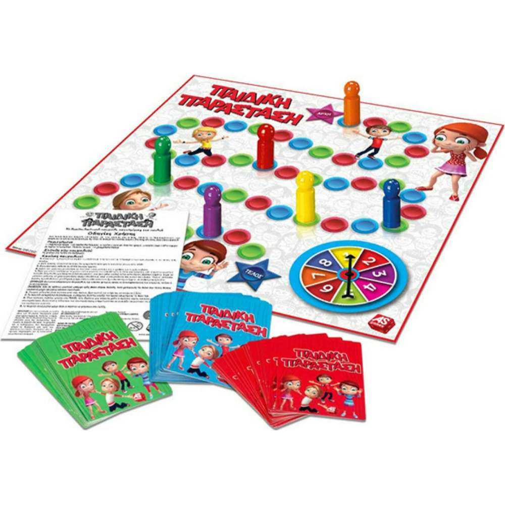 Με το επιτραπέζιο «Παιδική Παράσταση» ενισχύεται η δημιουργικότητα, η επικοινωνία και η συνεργασία μεταξύ των παιδιών. Μέσα από τις αποστολές και δραστηριότητες, τα παιδιά αντιλαμβάνονται την έννοια της επιβράβευσης, ενώ το πνεύμα του ανταγωνισμού χάνεται μέσα από τα γέλια και τις ξεκαρδιστικές στιγμές που πρέπει να υλοποιήσουν.