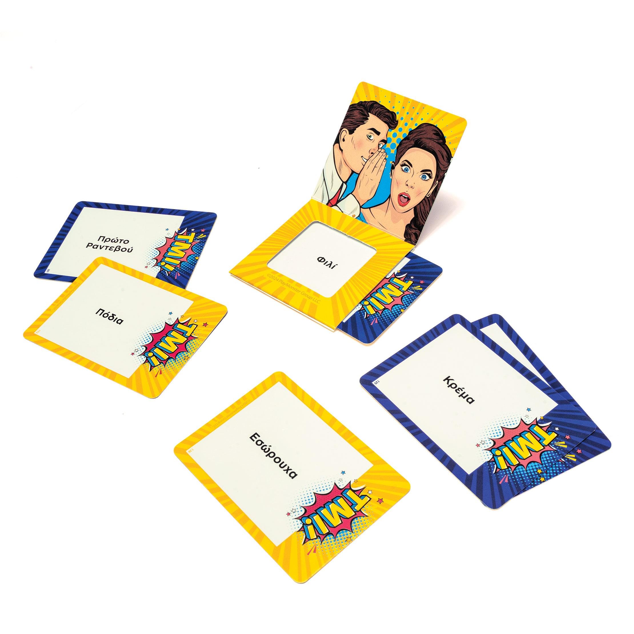 Προσέξτε τι λέτε – κάθε λέξη είναι σημαντική! Μοιραστείτε το σημείο σύνδεσης σας με την κάρτα, αλλά μην το κάνετε πολύ εύκολο. Ένας παίκτης προσπαθεί να μαντέψει την κάρτα Μάντεψε την Λέξη, ενώ όλοι οι υπόλοιποι παίκτες μοιράζονται τη δική τους εκδοχή! Για παράδειγμα: «Το δικό μου είναι ζεστό το καλοκαίρι!», «Το δικό μου είναι παλιό και τρίζει», «Το δικό μου είναι πάντα βρώμικο!».