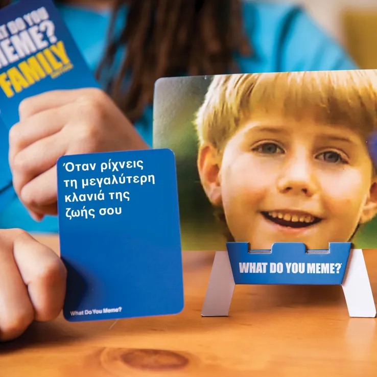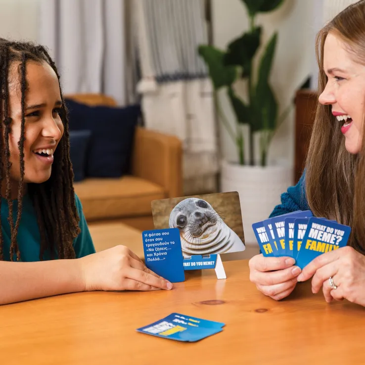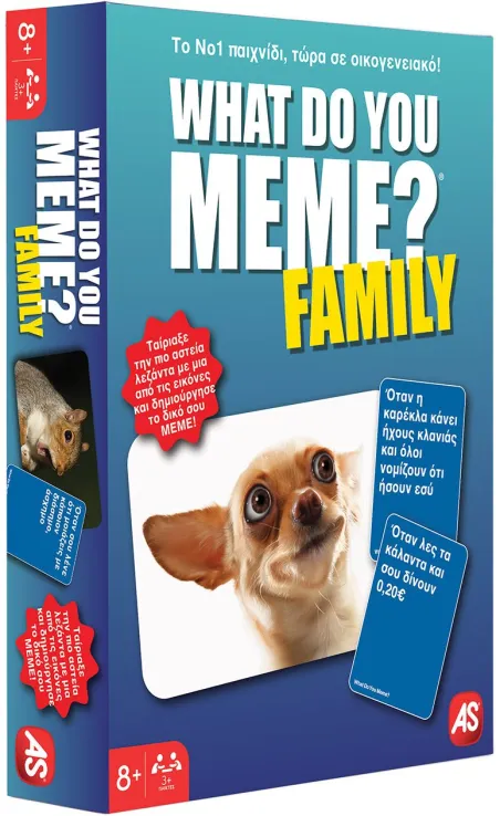 Το γνωστό What Do You Meme, τώρα με ανανεωμένο περιεχόμενο που ταιριάζει σε οικογενειακές μαζώξεις! Ταίριαξε την πιο αστεία λεζάντα σε μία από τις εικόνες και δημιούργησε το δικό σου MEME! Γίνε κριτής και επίλεξε τον καλύτερο και πιο αστείο συνδυασμό. Όλοι οι παίκτες θα μπουν στο ρόλο του κριτή, συναγωνιζόμενοι με φίλους και οικογένεια για να δημιουργήσουν τα πιο διασκεδαστικά memes.