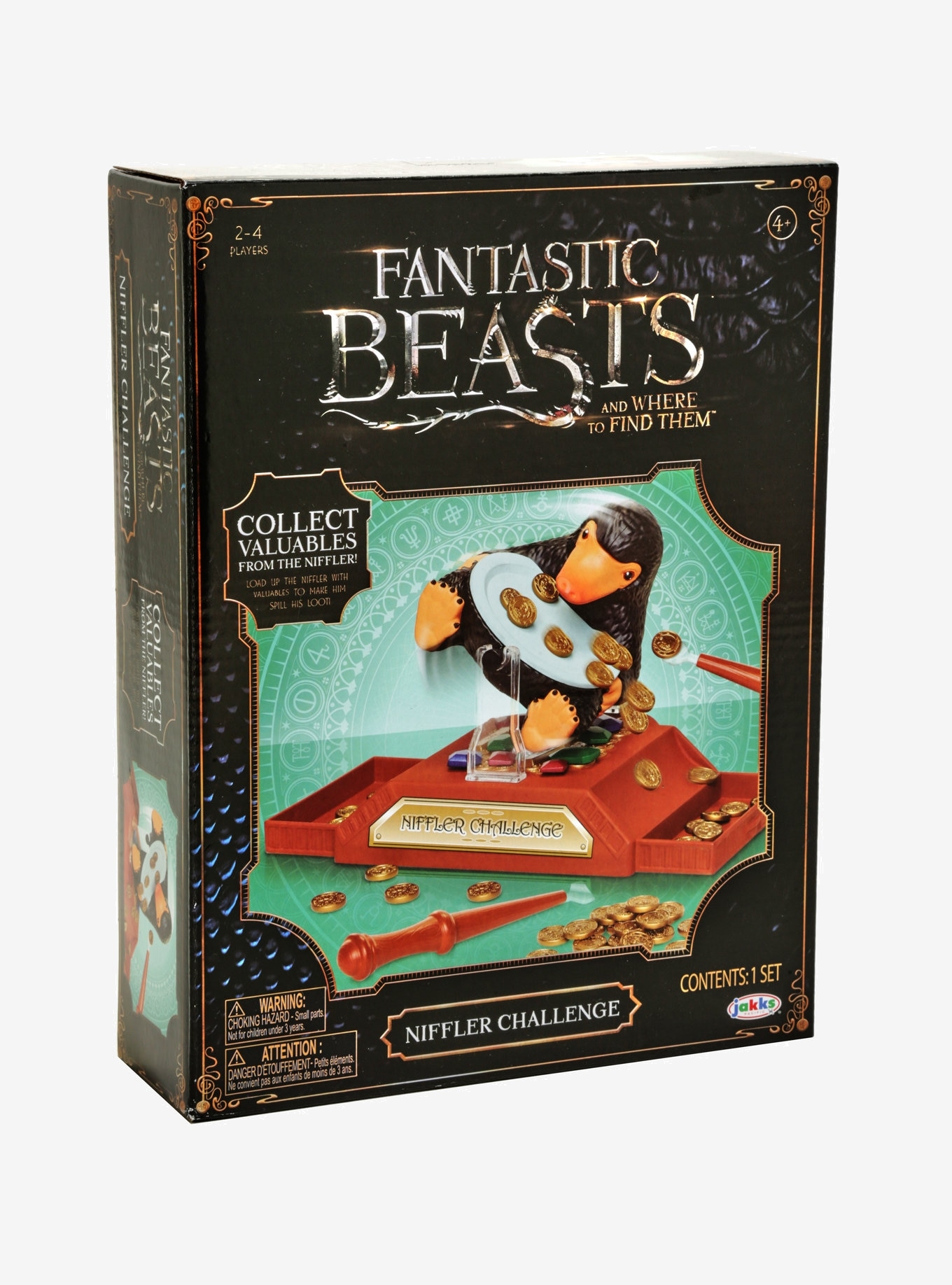 Fantastic Beasts and Where to Find Them. Οι Nifflers είναι υπέροχα μαγικά πλάσματα που ζουν στην Αγγλία με μία τάση να κυνηγάνε ότι λάμπει! Τα αξιαγάπητα Niffler έχουν το δικό τους παιχνίδι για πρώτη φορά. Σκοπός του παιχνιδιού είναι κάθε παίχτης από τους 2 να γεμίσει τον δίσκο που κρατάει ο Niffler με νομίσματα και κοσμήματα χρησιμοποιώντας το μαγικό του ραβδί έως ότου ο δίσκος αδειάσει σε κάποια από της δύο πλευρές. Ο παίχτης που πρώτος θα ρίξει τον δίσκο στην δική του μεριά κερδίζει. - Παίχτες 2-4 - Ηλικία: 4+ - Imported